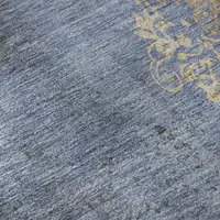 Blue Ivory And Gold Floral Washable Area Rug With UV Protection