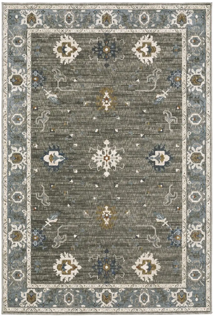 Blue Ivory And Gray Oriental Area Rug