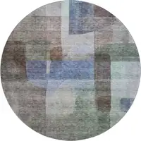 Blue Ivory and Orange Abstract Non Skid Area Rug