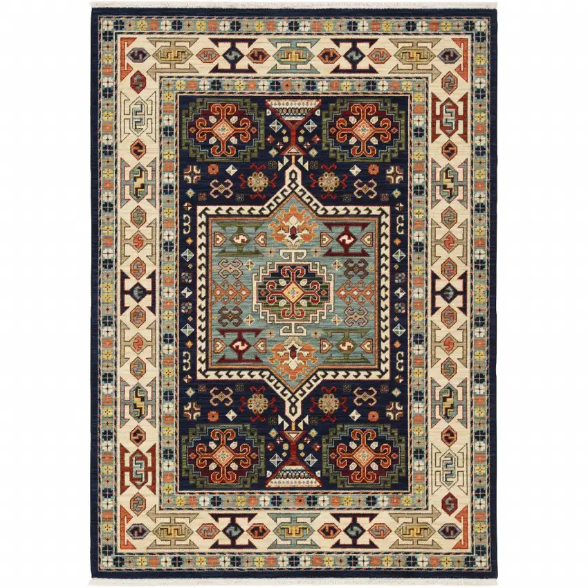 Blue Ivory Machine Woven Medallion Indoor Area Rug
