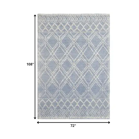 Adorn your home with a luxurious area rug featuring a stunning tribal geometric pattern. The blend of blue and ivory hues makes for a versatile style addition to numerous design aesthetics.