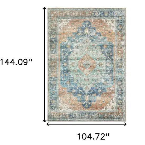 Blue Oriental Power Loom Stain Resistant Area Rug