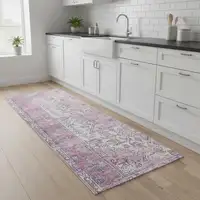 This runner rug showcases an elaborate Oriental design, adding an element of mystery to your décor. Its blue, red, green, and gold details work in harmony to transport you to exotic lands with every gaze.