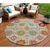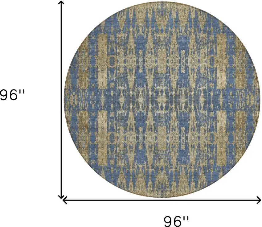 Set an inviting tone in your space with this 8-foot round blue round moroccan washable non skid indoor outdoor area rug. This geometric round shaped rug features a moroccan pattern in blue that combines a good looking print with a unique and updated shape. The mix of shape, color, and design gives this rug refreshing visual interest. Ideal for outdoor spaces or high traffic areas with kids and pets, this rug is made from heavy duty polyester that is stain resistant to help repel water, dirt, and stains. Versatile in use, durable, and easy to maintain, this rug is an ideal solution to add a decorative and inviting touch to your indoor or outdoor space. 96-inch h x 96-inch w x 0.19-inch d