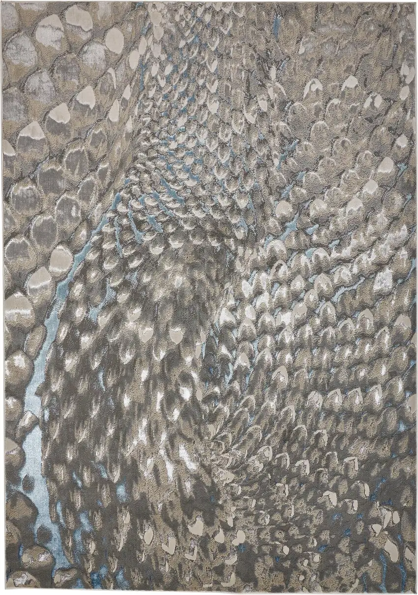 Add a contemporary twist to your living space with this geometric rug, offering engaging tones of blue, silver, and gray. Its stain-resistant qualities make it a practical and stylish choice.