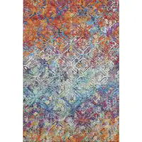 Blue Yellow And Green Geometric Washable Area Rug With UV Protection