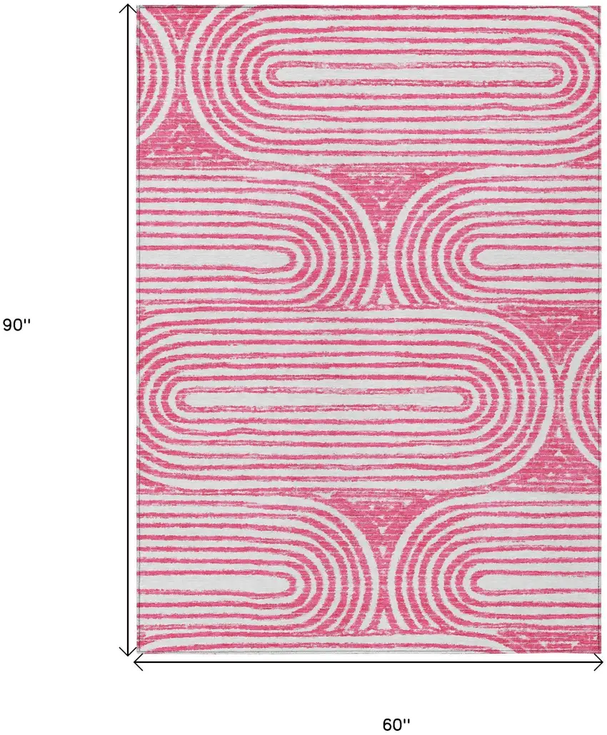 Blush Abstract Washable Non Skid Indoor Outdoor Area Rug