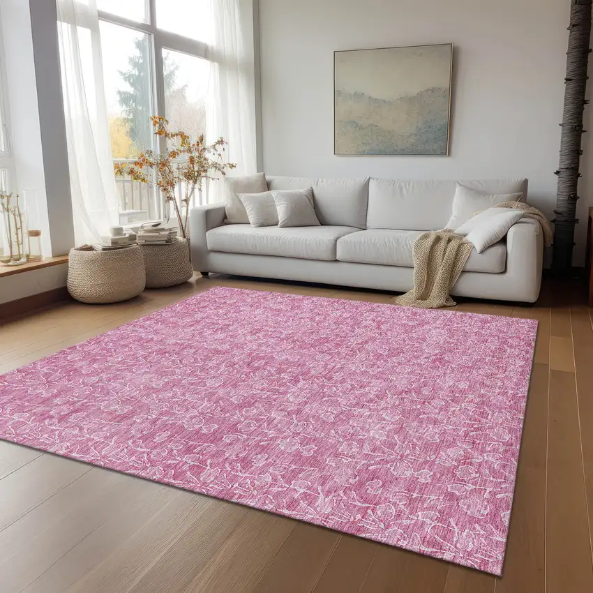 This 9-foot x 12-foot blush and ivory floral washable indoor outdoor area rug, is a great way to add warmth to a room. This rectangle shaped rug features a floral design that will work well both indoors or out. A classic shape marries with good looking design for your living room, hall, bedroom, porch, patio, or poolside. Ideal for outdoor spaces or high traffic areas with kids and pets, this rug is made from heavy duty polyester that is stain resistant to help repel water, dirt, and stains. Versatile in use, durable, and easy to maintain, this rug is an ideal solution to add a decorative and inviting touch to your indoor or outdoor space. 108-inch h x 144-inch w x 0.19-inch d.