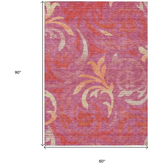 Blush Orange And Ivory Floral Washable Indoor Outdoor Area Rug
