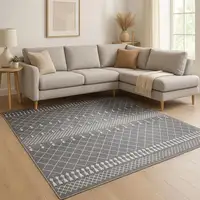 Blush Peach And Ivory Geometric Washable Area Rug With UV Protection
