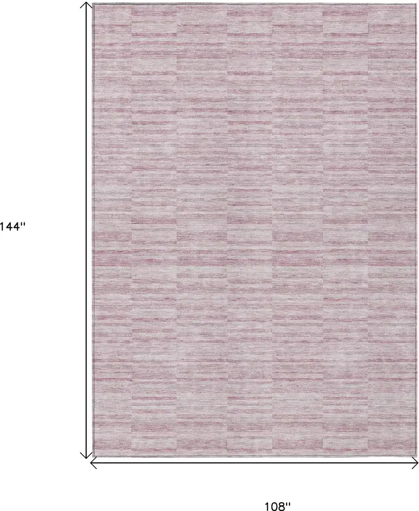 This 9-foot x 12-foot blush pink and beige striped washable indoor outdoor area rug, is a great way to add warmth to a room. This rectangle shaped rug features a striped design that will work well both indoors or out. A classic shape marries with good looking design for your living room, hall, bedroom, porch, patio, or poolside. Ideal for outdoor spaces or high traffic areas with kids and pets, this rug is made from heavy duty polyester that is stain resistant to help repel water, dirt, and stains. Makes a great way to dress up your patio, porch, or poolside, but also works well as a durable and easy to maintain option in the kitchen, family room, or mudroom. 108-inch h x 144-inch w x 0.19-inch d.