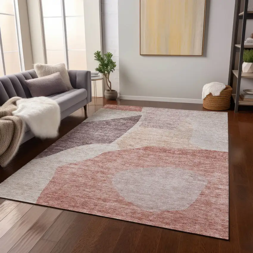 Add great coloration and comfortable texture to your space with this 9-foot x 12-foot blush pink and mauve abstract washable indoor outdoor area rug. This rectangle shaped rug features a abstract design that will work well both indoors or out. A classic shape marries with good looking design for your living room, hall, bedroom, porch, patio, or poolside. Ideal for outdoor spaces or high traffic areas with kids and pets, this rug is made from heavy duty polyester that is stain resistant to help repel water, dirt, and stains. Versatile in use, durable, and easy to maintain, this rug is an ideal solution to add a decorative and inviting touch to your indoor or outdoor space. 108-inch h x 144-inch w x 0.19-inch d.