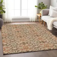 Brown And Beige Abstract Geometric Washable Area Rug With UV Protection