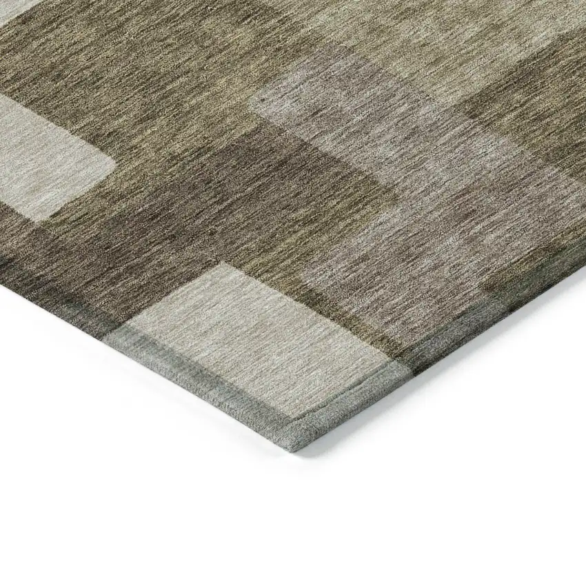 Brown And Beige Abstract Washable Indoor Outdoor Area Rug
