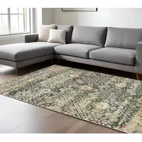 Brown And Beige Geometric Washable Area Rug With UV Protection
