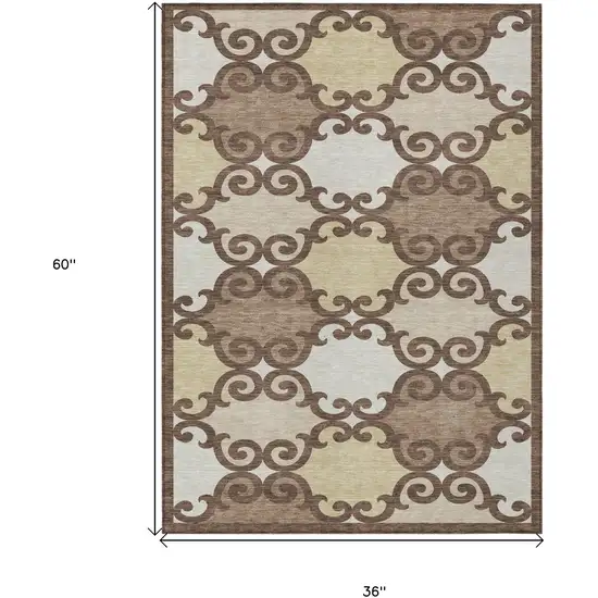 Brown And Beige Trellis Washable Indoor Outdoor Area Rug