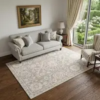 Brown And Gray Abstract Washable Area Rug With UV Protection