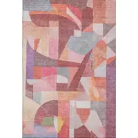 Brown And Ivory Abstract Washable Area Rug With UV Protection