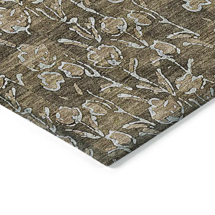 Brown And Ivory Floral Washable Indoor Outdoor Area Rug