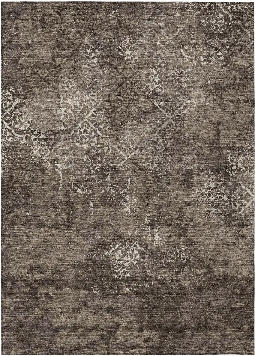 Brown And Ivory Floral Washable Indoor Outdoor Area Rug