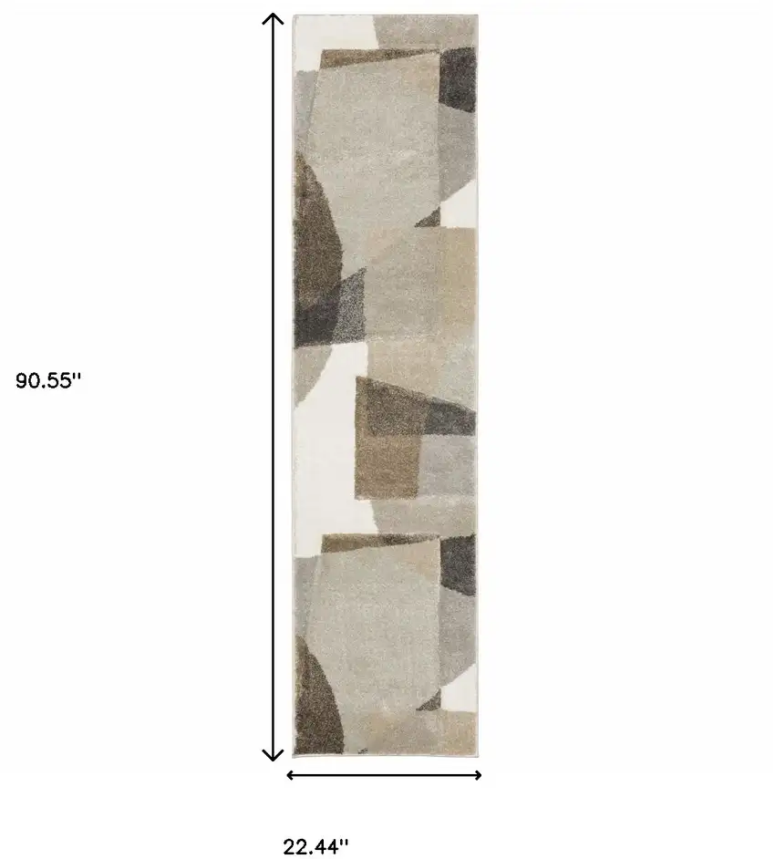 This intriguing runner rug features a striking ivory and brown geometric pattern, effortlessly blending style and sophistication. Ideal for high-traffic areas, it benefits from a durable power loom construction.