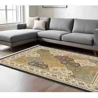 Brown And Ivory Patchwork Washable Area Rug With UV Protection