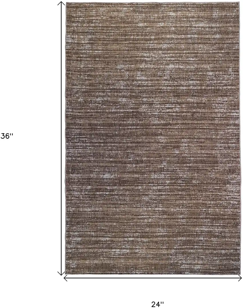 Brown and Ivory Striped Stain Resistant Indoor Outdoor Area Rug