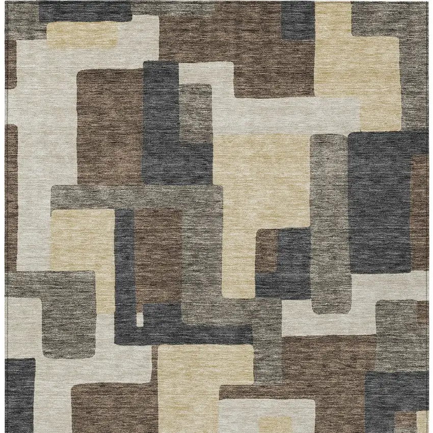 Brown And Taupe Abstract Washable Indoor Outdoor Area Rug