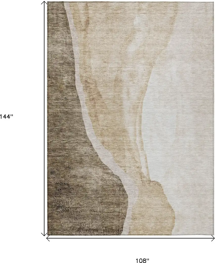 Add some artistry to your room with this 9-foot x 12-foot brown and taupe abstract washable indoor outdoor area rug. This rectangle shaped rug features a abstract design that will work well both indoors or out. A classic shape marries with good looking design for your living room, hall, bedroom, porch, patio, or poolside. Ideal for outdoor spaces or high traffic areas with kids and pets, this rug is made from heavy duty polyester that is stain resistant to help repel water, dirt, and stains. Makes a great way to dress up your patio, porch, or poolside, but also works well as a durable and easy to maintain option in the kitchen, family room, or mudroom. 108-inch h x 144-inch w x 0.19-inch d.