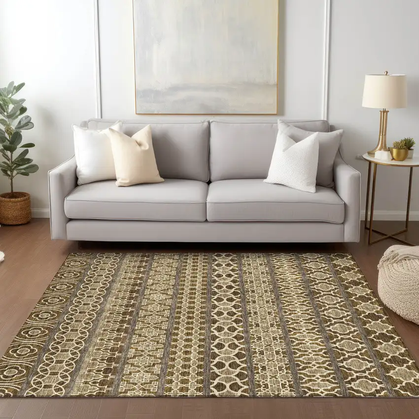 Brown And Taupe Quatrefoil Washable Indoor Outdoor Area Rug