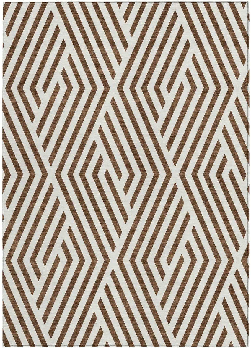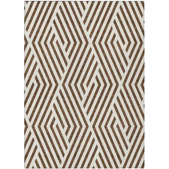 Add great coloration and comfortable texture to your space with this 10-foot x 14-foot brown and white geometric washable stain resistant non skid indoor outdoor area rug. This rectangle shaped rug features a geometric design in brown and white to give it visual interest. A classic shape marries with good looking design for your space ideal for spaces with kids and pets, this rug is stain resistant to help repel stains and spilled liquids. Area rugs help to give warmth and sense of home to your space. 120-inch H x 168-inch W x 0.19-inch D