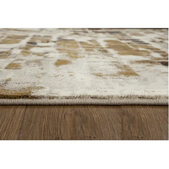 Brown Beige Abstract Tiles Distressed Runner Rug