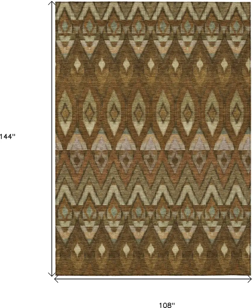 Add great coloration and comfortable texture to your space with this 9-foot x 12-foot brown beige and artichoke green southwestern washable indoor outdoor area rug. This rectangle shaped rug features a southwestern design that will work well both indoors or out. A classic shape marries with good looking design for your living room, hall, bedroom, porch, patio, or poolside. Ideal for outdoor spaces or high traffic areas with kids and pets, this rug is made from heavy duty polyester that is stain resistant to help repel water, dirt, and stains. Makes a great way to dress up your patio, porch, or poolside, but also works well as a durable and easy to maintain option in the kitchen, family room, or mudroom. 108-inch h x 144-inch w x 0.19-inch d.