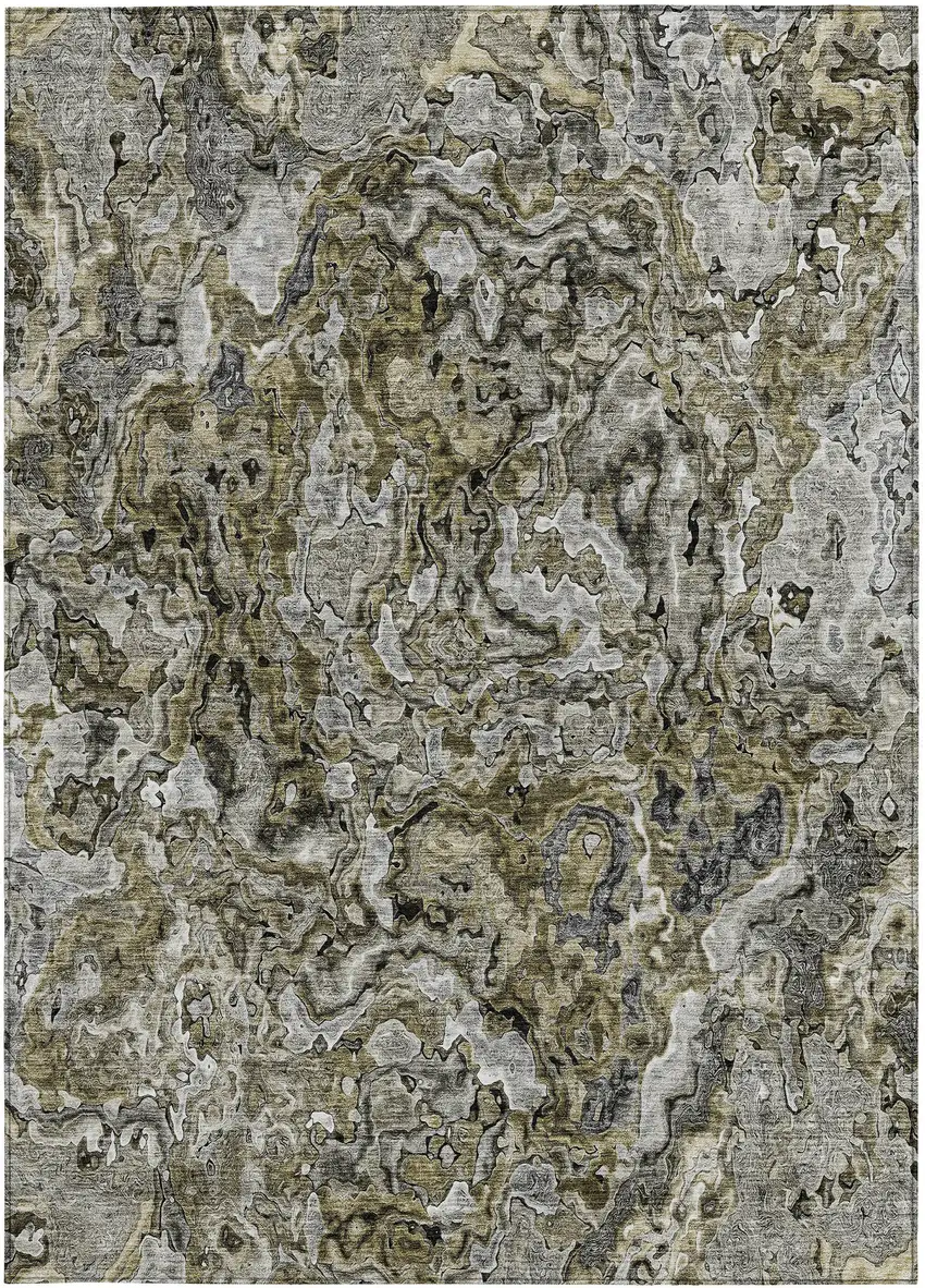 Brown Beige And Tan Abstract Washable Indoor Outdoor Area Rug