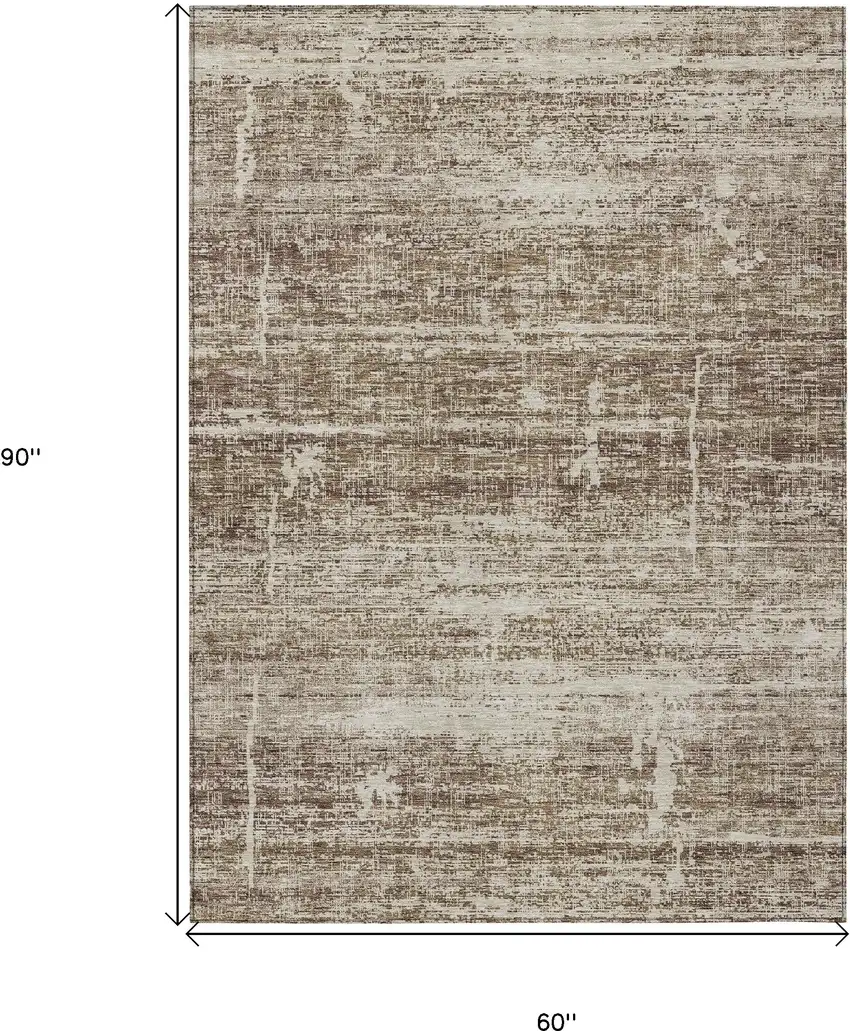 Set an inviting tone in your space with this 5-foot x 8-foot brown beige and taupe abstract washable indoor outdoor area rug. This rectangle shaped rug features a abstract design that will work well both indoors or out. A classic shape marries with good looking design for your living room, hall, bedroom, porch, patio, or poolside. Ideal for outdoor spaces or high traffic areas with kids and pets, this rug is made from heavy duty polyester that is stain resistant to help repel water, dirt, and stains. Versatile in use, durable, and easy to maintain, this rug is an ideal solution to add a decorative and inviting touch to your indoor or outdoor space. 60-inch h x 90-inch w x 0.19-inch d.