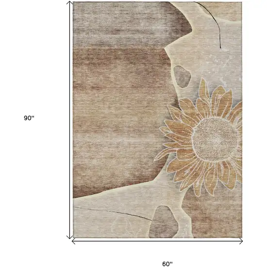 Add great coloration and comfortable texture to your space with this 5-foot x 8-foot brown beige and taupe floral washable indoor outdoor area rug. This rectangle shaped rug features a floral design that will work well both indoors or out. A classic shape marries with good looking design for your living room, hall, bedroom, porch, patio, or poolside. Ideal for outdoor spaces or high traffic areas with kids and pets, this rug is made from heavy duty polyester that is stain resistant to help repel water, dirt, and stains. Makes a great way to dress up your patio, porch, or poolside, but also works well as a durable and easy to maintain option in the kitchen, family room, or mudroom. 60-inch h x 90-inch w x 0.19-inch d.