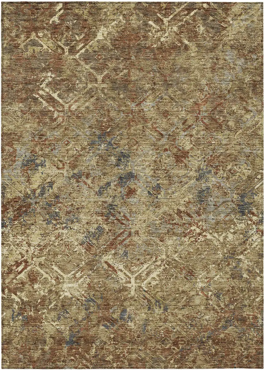 Set an inviting tone in your space with this 9-foot x 12-foot brown copper and gold geometric washable indoor outdoor area rug. This rectangle shaped rug features a geometric design that will work well both indoors or out. A classic shape marries with good looking design for your living room, hall, bedroom, porch, patio, or poolside. Ideal for outdoor spaces or high traffic areas with kids and pets, this rug is made from heavy duty polyester that is stain resistant to help repel water, dirt, and stains. Versatile in use, durable, and easy to maintain, this rug is an ideal solution to add a decorative and inviting touch to your indoor or outdoor space. 108-inch h x 144-inch w x 0.19-inch d.