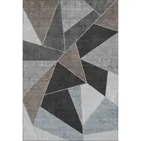Brown Gold And Blue Floral Washable Area Rug With UV Protection