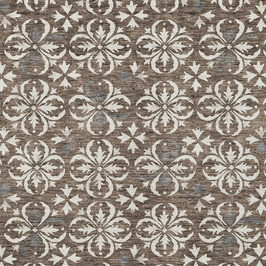 Brown Gray And Beige Floral Washable Indoor Outdoor Area Rug