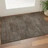 Brown Gray And Ivory Geometric Washable Area Rug With UV Protection