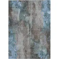 Brown Green And Blue Abstract Washable Indoor Outdoor Area Rug