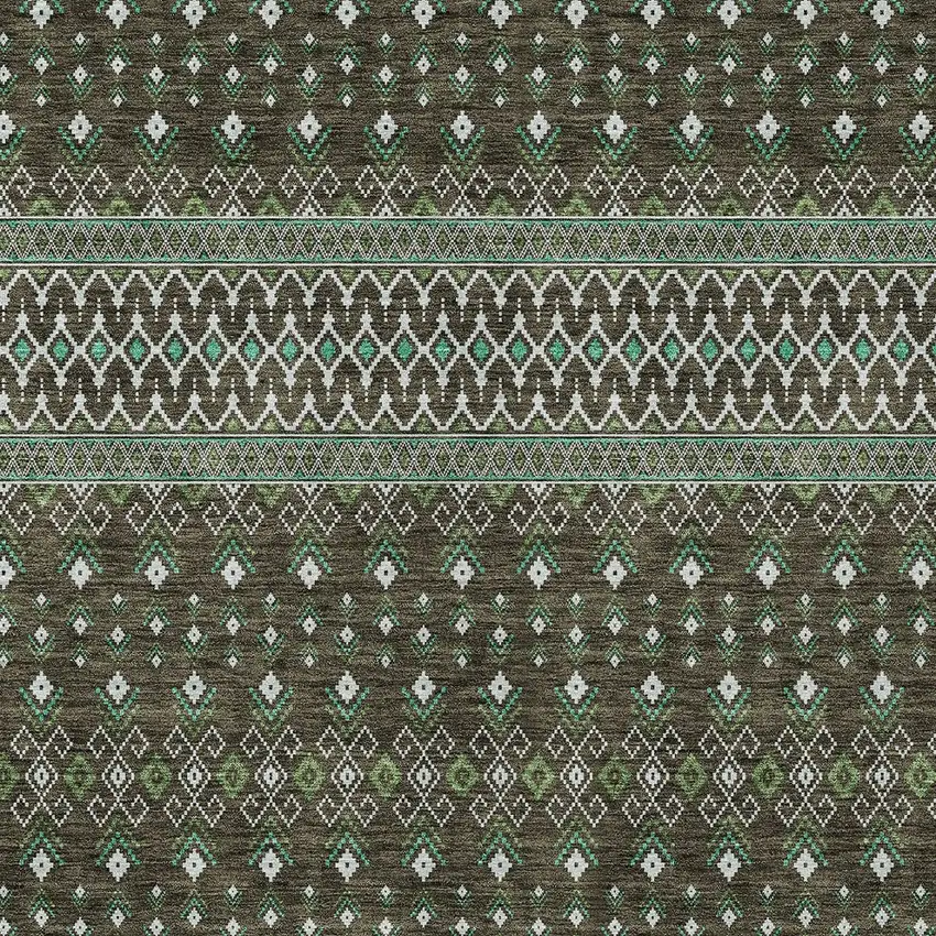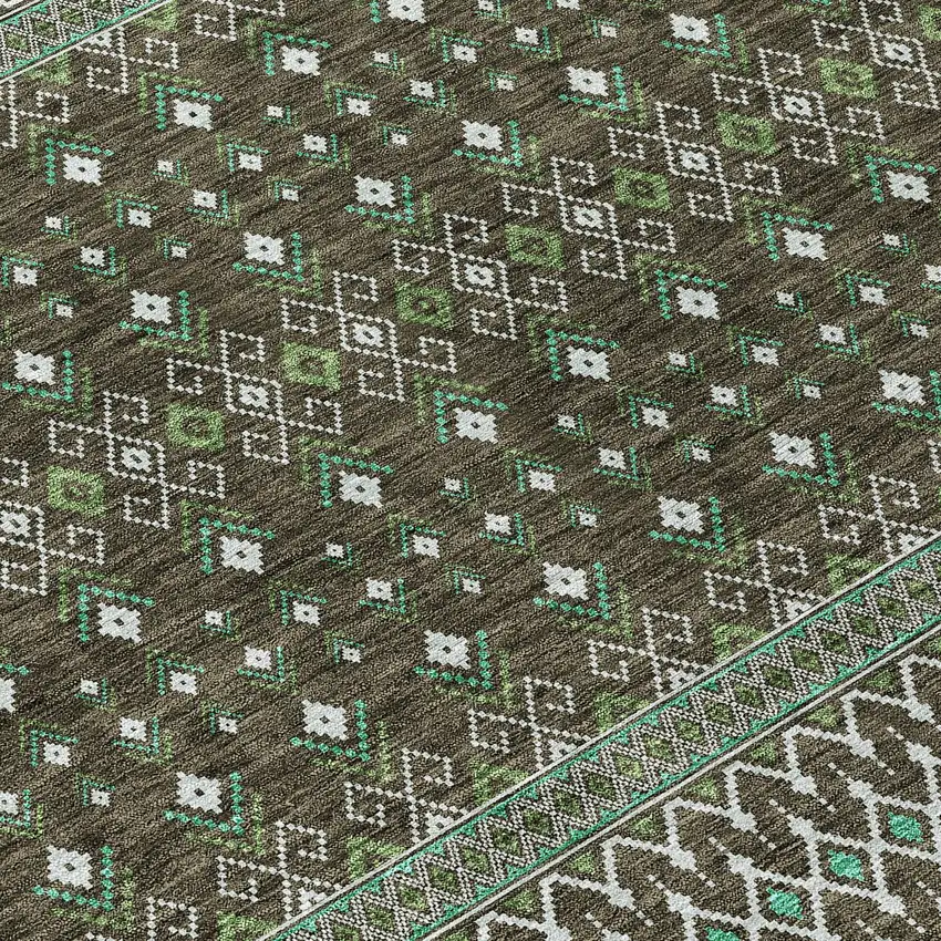 Add great coloration and comfortable texture to your space with this 5-foot x 8-foot brown green and olive green tribal washable indoor outdoor area rug. This rectangle shaped rug features a tribal design that will work well both indoors or out. A classic shape marries with good looking design for your living room, hall, bedroom, porch, patio, or poolside. Ideal for outdoor spaces or high traffic areas with kids and pets, this rug is made from heavy duty polyester that is stain resistant to help repel water, dirt, and stains. Versatile in use, durable, and easy to maintain, this rug is an ideal solution to add a decorative and inviting touch to your indoor or outdoor space. 60-inch h x 90-inch w x 0.19-inch d.