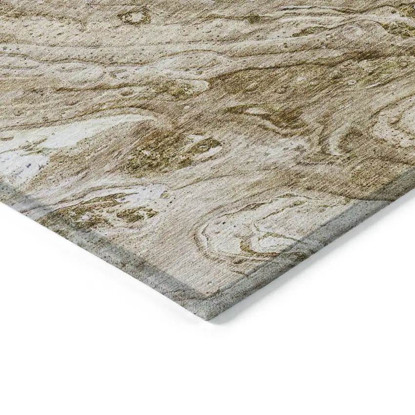 Brown Tan And Beige Abstract Washable Indoor Outdoor Area Rug