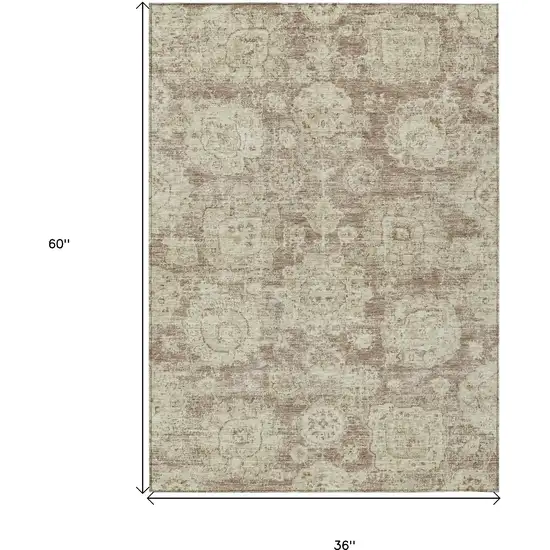 Brown Tan And Beige Floral Washable Indoor Outdoor Area Rug
