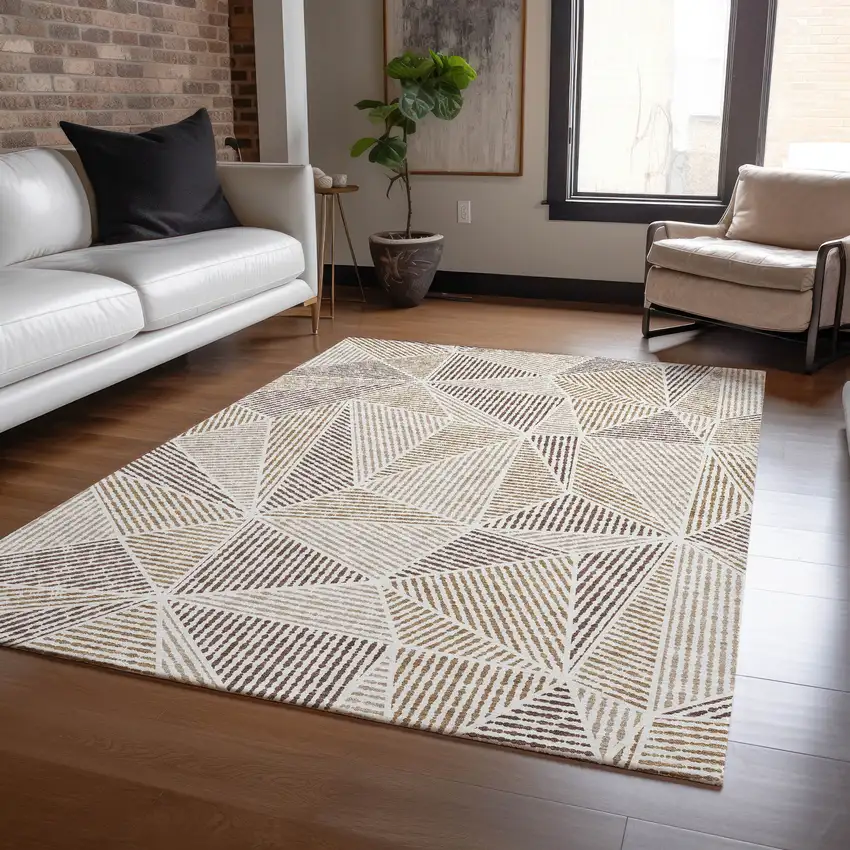 Brown Taupe And Beige Geometric Washable Indoor Outdoor Area Rug