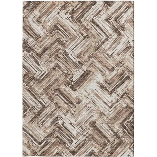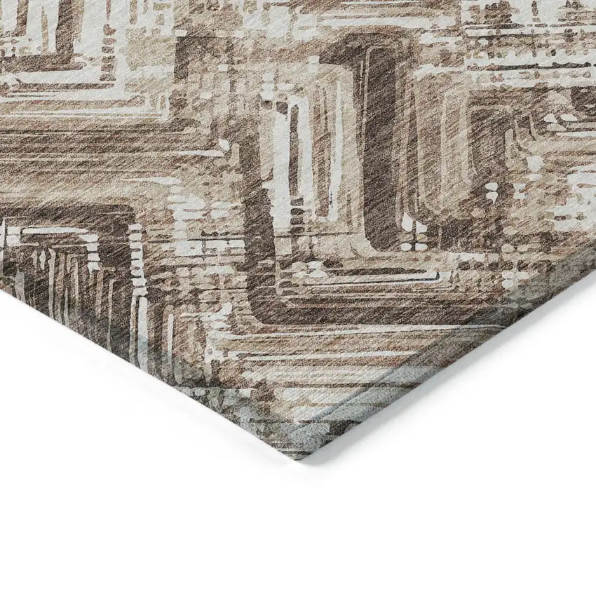 Add some artistry to your room with this 5-foot x 8-foot brown taupe and tan geometric washable indoor outdoor area rug. This rectangle shaped rug features a geometric design that will work well both indoors or out. A classic shape marries with good looking design for your living room, hall, bedroom, porch, patio, or poolside. Ideal for outdoor spaces or high traffic areas with kids and pets, this rug is made from heavy duty polyester that is stain resistant to help repel water, dirt, and stains. Makes a great way to dress up your patio, porch, or poolside, but also works well as a durable and easy to maintain option in the kitchen, family room, or mudroom. 60-inch h x 90-inch w x 0.19-inch d.