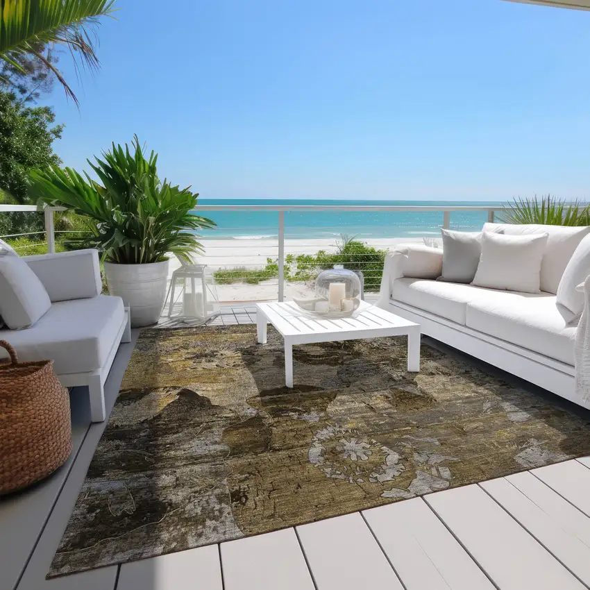 Brown Terracotta and Gray Floral Washable Non Skid Indoor Outdoor Area Rug