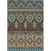 Burgundy Beige And Charcoal Ikat Washable Indoor Outdoor Area Rug