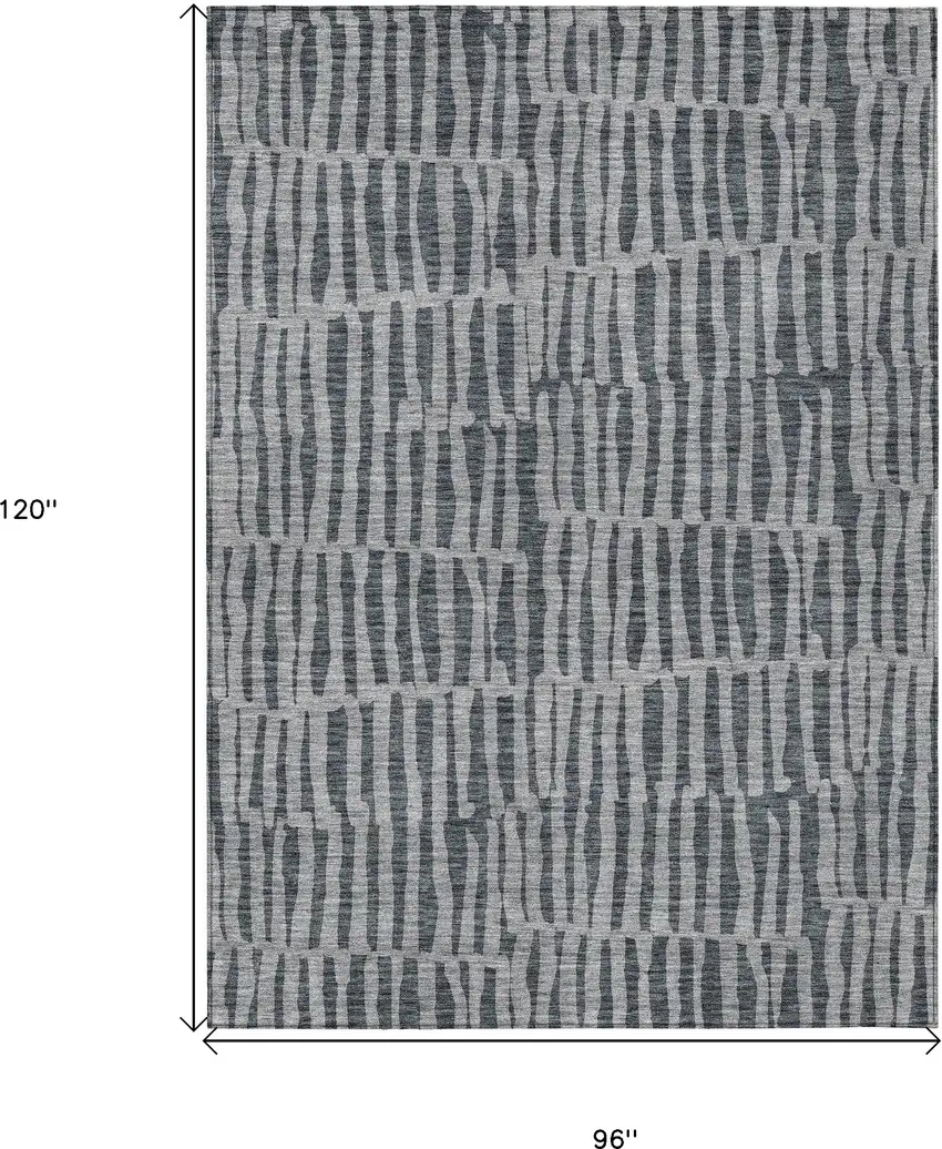 Charcoal And Gray Striped Washable Indoor Outdoor Area Rug