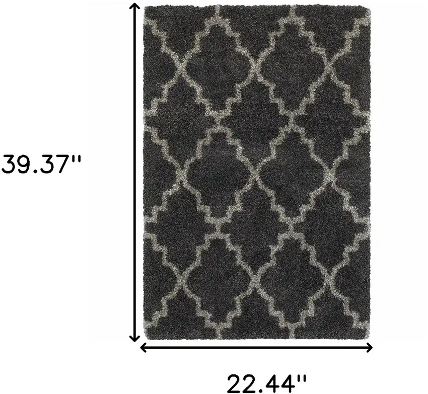 Charcoal And Grey Geometric Shag Power Loom Stain Resistant Area Rug